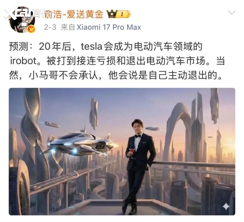 这并非一时口快。此前,他曾在社交媒体将自己P成“钢铁侠”,并预言“20年后,特斯拉会成为电动车领域的iRobot,被打到接连亏损和退出市场”,并调侃“小马哥”(马斯克)不会承认失败。这些言论迅速将他塑造为一个敢于挑战行业巨头、颠覆传统商业谦逊文化的“狂人”形象。