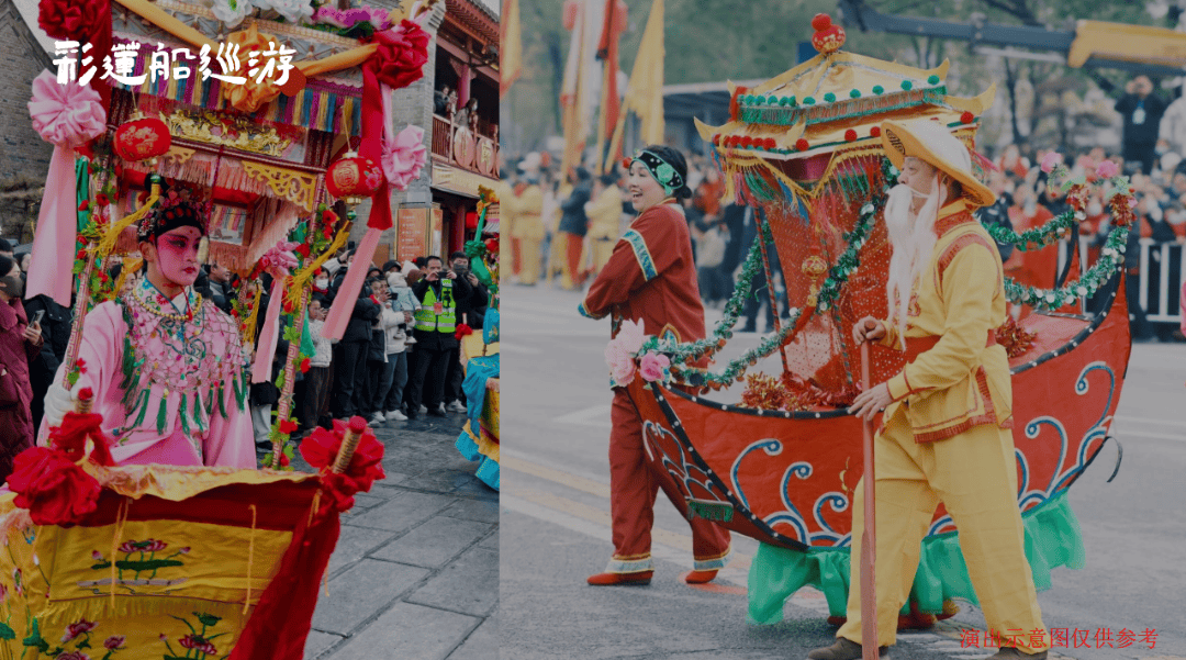 巡游采莲船:民俗彩莲船队伍摇曳生姿,搭配戏曲舞蹈巡游,古朴欢快,带来浓浓年味。